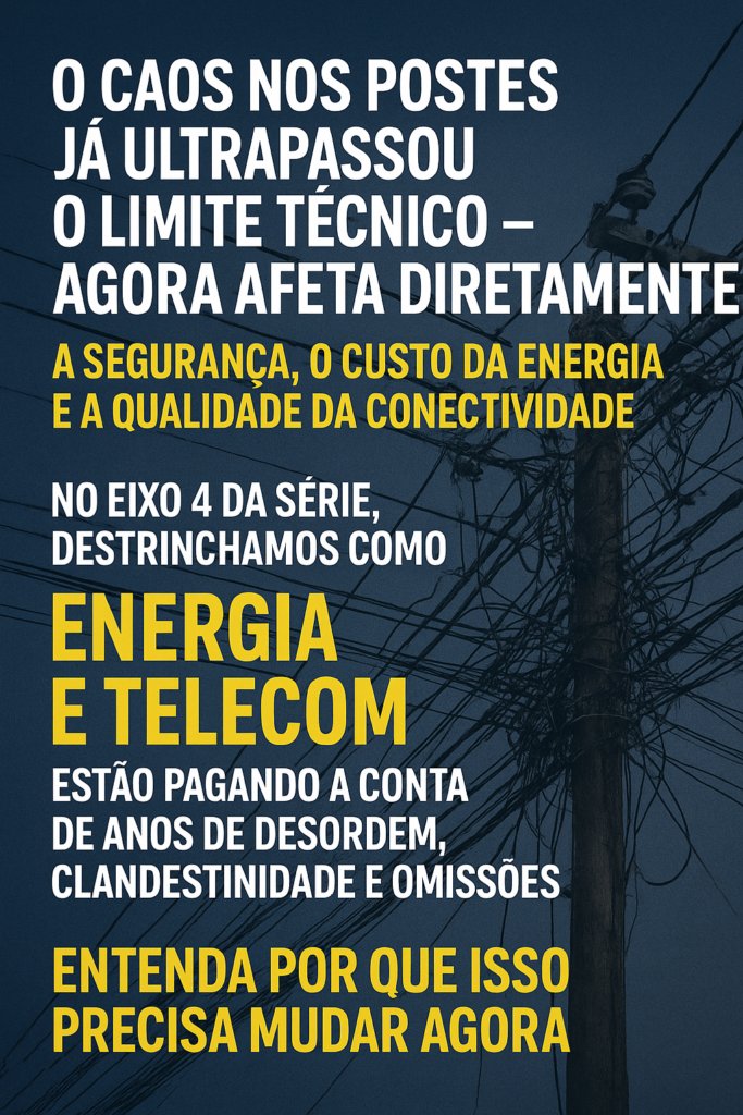 Depois de compreender a evolução técnica e regulatória (Eixo 1), decifrar as causas estruturais do caos (Eixo 2) e expor as instalações à revelia e clandestinas (Eixo 3), agora é hora de entender quem paga o preço real dessa desordem — e quais os reflexos diretos sobre dois pilares essenciais da infraestrutura nacional: energia e telecomunicações.