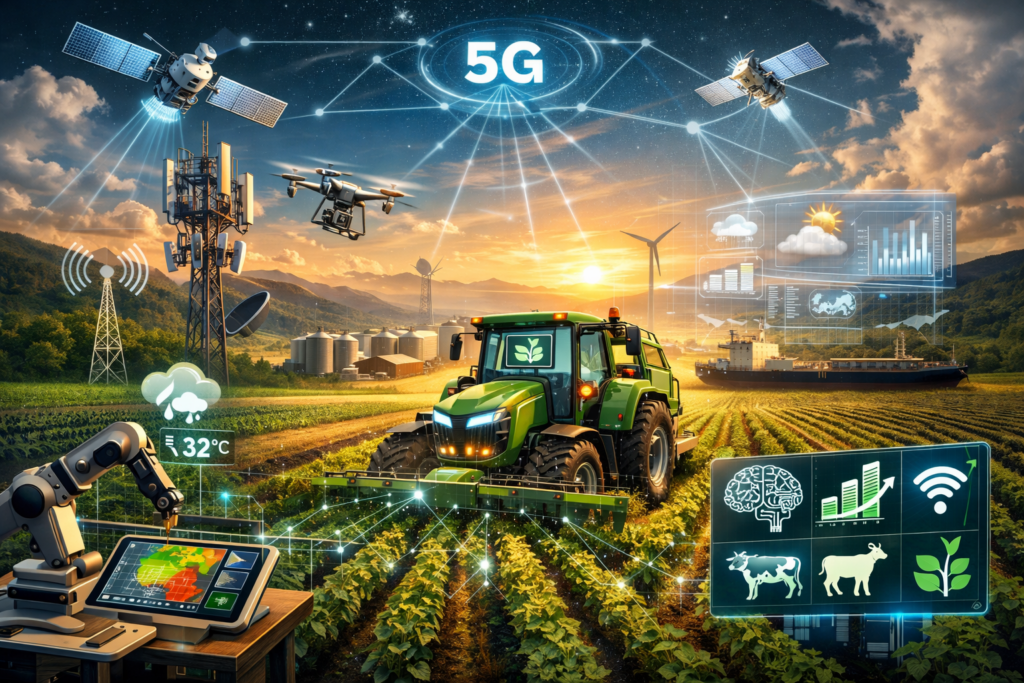 Não existe agro 4.0 sem telecom robusta. Redes móveis privadas, 5G, satélites de baixa órbita e backbones de fibra óptica estão redefinindo a gestão da fazenda como uma operação conectada, monitorada e previsível.