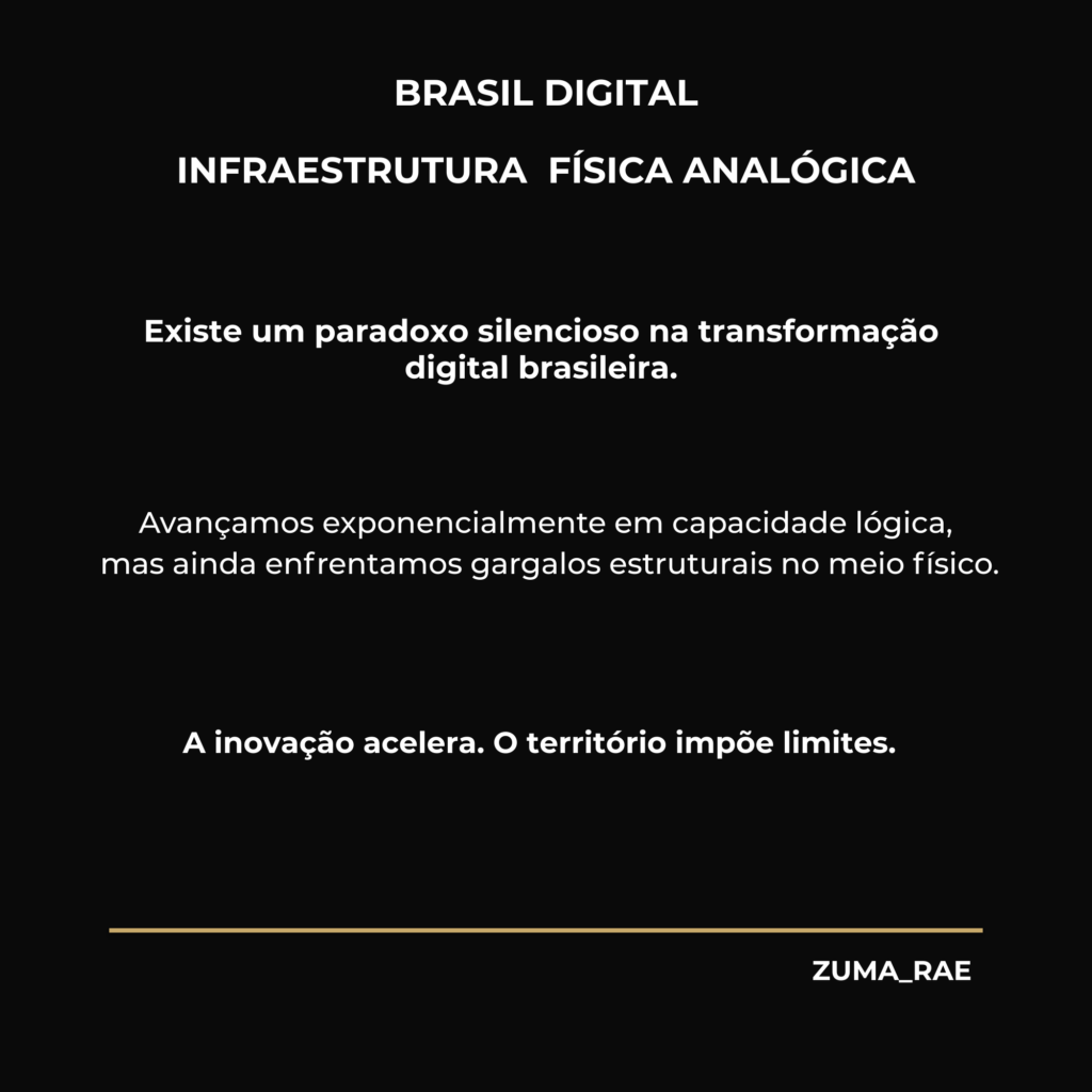 Existe um paradoxo silencioso na transformação digital brasileira: avançamos exponencialmente em capacidade lógica, mas ainda enfrentamos gargalos estruturais no meio físico.