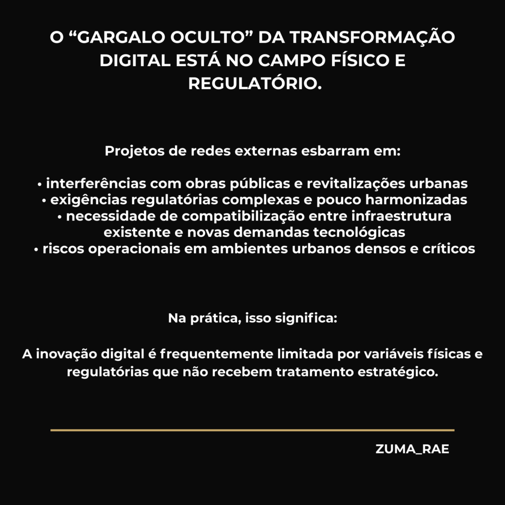 Na prática, isso significa que a inovação digital muitas vezes é limitada por variáveis físicas e regulatórias que não recebem a devida atenção estratégica.